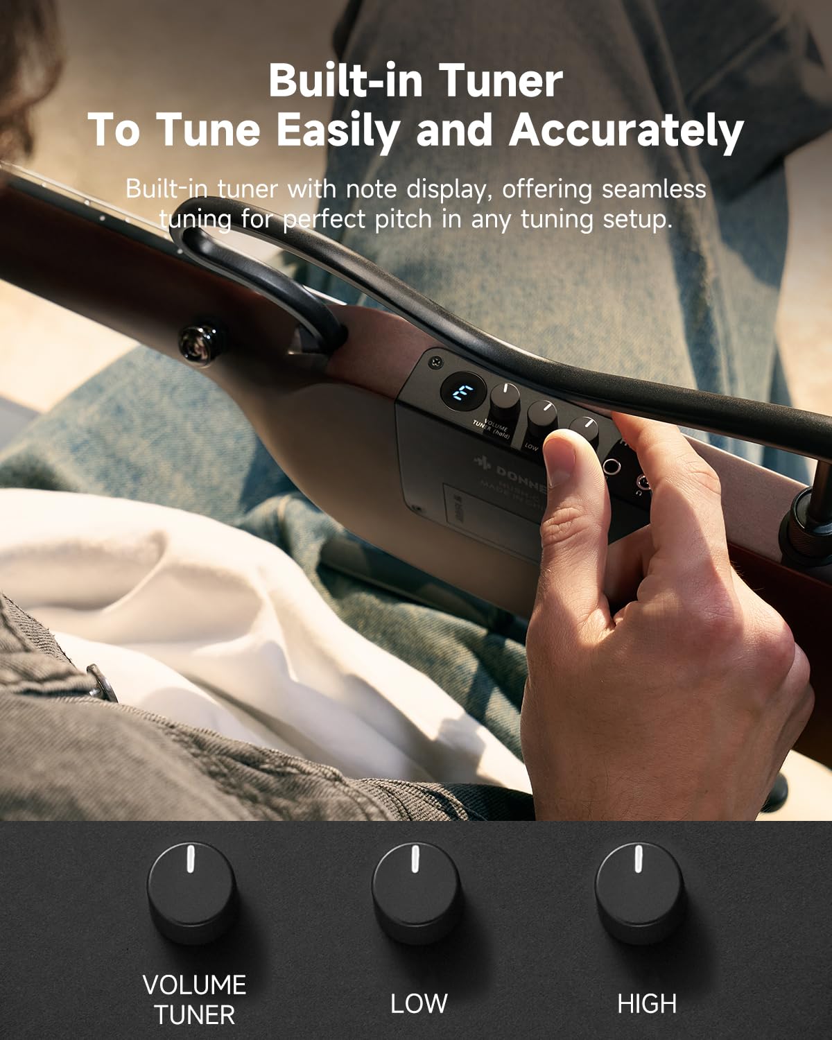 - 【Multifunktional für müheloses Spielen】Die HUSH-C Nylon-Akustik-E-Gitarre bietet zahlreiche smarte Funktionen für ein reibungsloses Üben – darunter ein 2-Band-EQ für einfaches Stimmen und Klangregelung sowie eine Warnanzeige bei niedrigem Batteriestand. Über den AUX-Eingang kannst du zu Playbacks jammen, und mit dem versteckten Inbusschlüssel lassen sich schnelle Anpassungen ganz ohne zusätzliches Werkzeug vornehmen.
